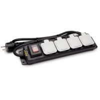 4-vägs jordat med lock och strömbrytare. 1.5 m gummikabel H07RN-F 3G1,5. Godkänd för utomhusbruk IP44. SB-förpackad.